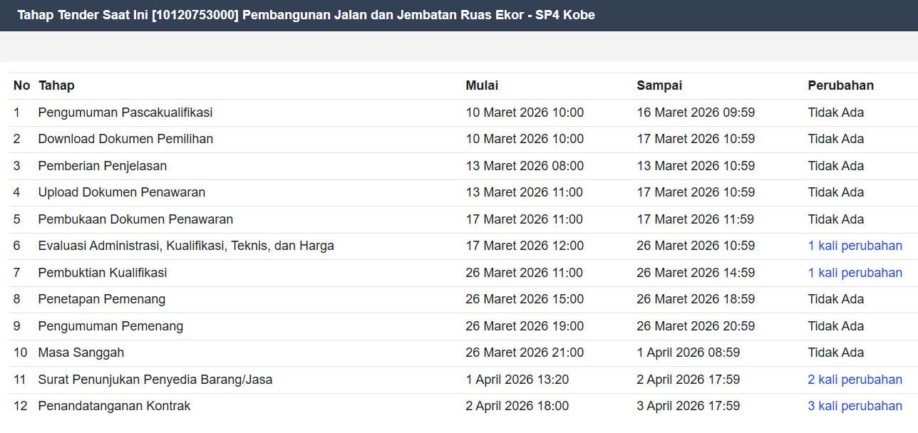 Dalam wawancara yang sama, Hairil juga menjelaskan bahwa proses tender proyek tersebut telah selesai dan saat ini Memasuki Tahapan Masa Sanggah sesuai jadwal. Namun, pernyataan ini tidak selaras dengan data tahapan tender yang tersedia. Berdasarkan Tahapan yang ada, Tidak ditemukan Tahapan Masa Sanggah, sementara Penandatanganan kontrak tercatat telah dilakukan pada 3 April 2026, atau enam hari sebelum wawancara tersebut berlangsung.